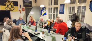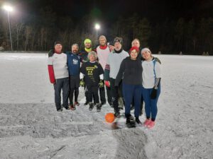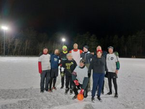 Immerhin reichte es diesmal für ein 5 gegen 5. In der ersten Halbzeit war es ein ausgeglichenes Spiel. Beide Abwehrreihen organisierten sich gut und es stand lange 0:0. Einmal wurde die schwarze Hintermannschaft ausgekontert und der Halbzeitstand von 1:0 für Weiß war perfekt. In Hälfte 2 versuchte Schwarz auszugleichen und hatte einige gute Tormöglichkeiten. Letztendlich waren sie vor dem gegnerischen Tor zu harmlos, um den Torwart der Weißen in Bedrängnis zu bringen. Anders die Weißen, die ihre Chancen eiskalt nutzten und letztlich mit 4:1 gewannen. Ein Highlight an diesem Abend war noch der Beginn der Grillsaison!