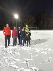 Erneut konnten wir einen neuen Spieler begrüßen, Florian U., der bei den Weißen ein Probespiel absolvierte. Weiß spielte von Anfang an druckvoll, war aber nicht in der Lage ein eigenes Tor zu erzielen. Die 2:0 Pausenführung kam durch 2 Eigentore der Weißen zustande, die vor dem Tor der Schwarzen glücklos blieben. Nach dem Seitenwechsel konnte schwarz die Führung zunächst ausbauen. Dann besann sich weiß, machte mehr Druck und kam in kurzer Zeit auf 2:3 heran. Schwarz hatte vorübergehend die Linie verloren und das Spiel drohte zu kippen. Als den Weißen erneut ein Eigentor unterlief, war das Spiel entschieden. Es blieb bis zum Schluss beim 4:2 für schwarz.