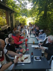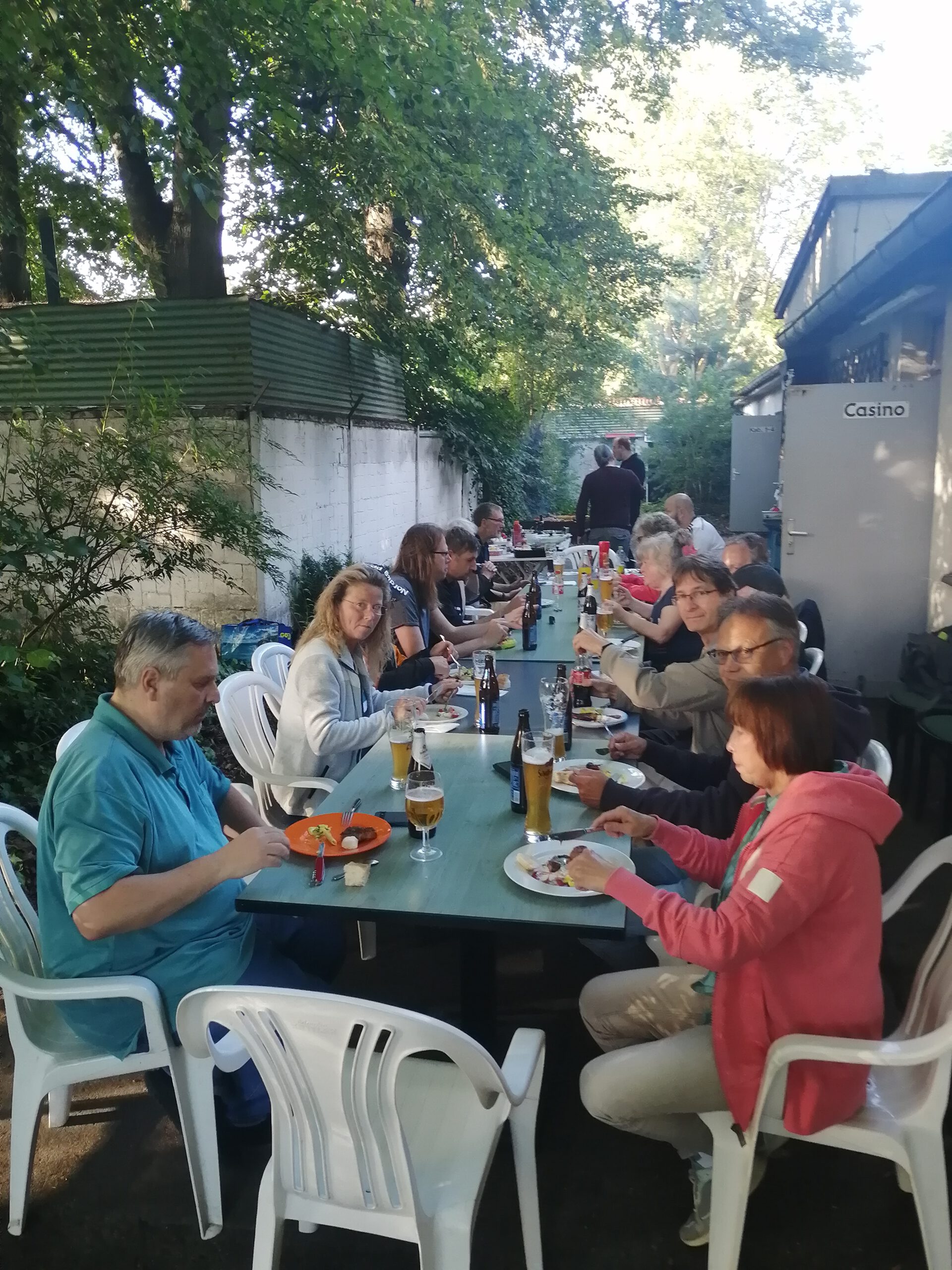 Bei hochsommerlichen Temperaturen urlaubsbedingt wieder nur 10 Spielerinnen und Spieler auf der staubigen Asche. Weiß begann konzentriert, vor allem auf solide Abwehrarbeit bedacht. Schwarz spielte läuferisch stark, konnte die Führung der Weißen jedoch nicht verhindern. Schwarz erspielte sich einige Chancen, die allesamt mit Glück (2 mal Pfosten) und Geschick von den Weißen entschärft wurden. Weiß war effektiv und kam bis zum Seitenwechsel zu zwei weiteren Treffern zum 3:0 Pausenstand. Schwarz kam wesentlich wacher in die 2. Halbzeit. Weiß spielte zu unaufmerksam und ermöglichte den Schwarzen, auf 2:3 heranzukommen. Erst als weiß auf 4:2 erhöhte, kam wieder mehr Sicherheit ins Spiel der Weißen. Nach dem 3. Treffer der Schwarzen traf weiß ebenfalls wieder und konnte den Vorsprung über die Zeit bringen. Mit dem Schlusspfiff, nach totaler Offensive der Schwarzen, fiel das 6:3 für weiß.
